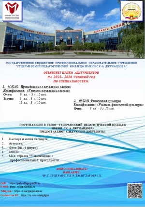 ГБПОУ "ГУДЕРМЕССКИЙ ПЕДАГОГИЧЕСКИЙ КОЛЛЕДЖ ИМЕНИ С.С-А. ДЖУНАИДОВА"