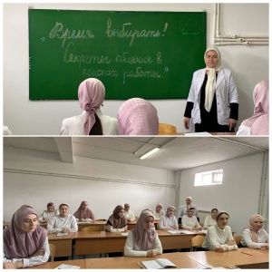 В целях выполнения профориентационной работы педагог-психолог Маллаева З. А. провела беседу с обучающимися 4 курса на тему: «Время выбирать! Секреты общения в поисках работы».