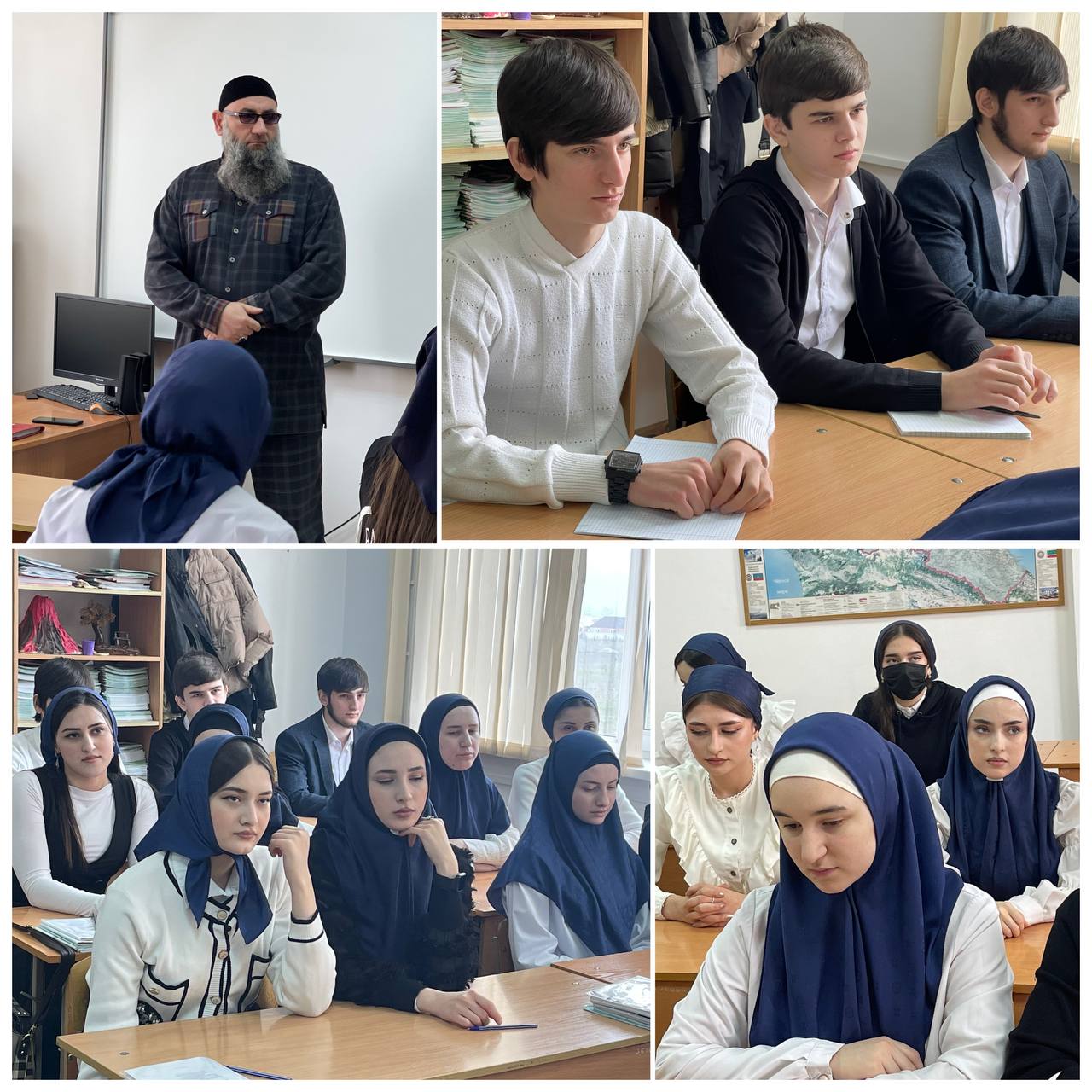 24.03.2022В рамках реализации Единой концепции духовно-нравственного воспитания и развития подрастающего поколения Чеченской Республики и в целях формирования у обучающихся представлений о традициях соблюдения поста в месяц Рамадан со студентами колледжа проводятся беседы о значимости священного месяца, поста, а также главного мусульманского праздника – Ураза-байрам. Беседа затрагивает вопросы, связанные с соблюдением всех правил и норм Ислама, правильного и своевременного совершения намаза, соблюдения обязательного для каждого мусульманина поста в месяц Рамадан. Было задано много вопросов по теме, и на каждый из них был получен полный, обстоятельный ответ.