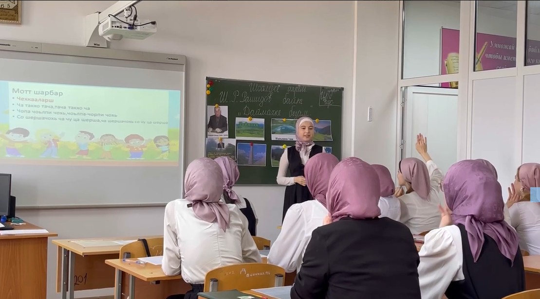 04.04.2022Уьш дешаран практикица нийса йог1уш яра. Массара а езаш т1елецира Исламова Жанната гайтина нохчийн литературин урок. Урокан ц1е яра: «Шаид Рашидов. Даймахке безам». Маршалла хаттар, урокан д1ах1оттам, мотиваци яр, урок д1аяхьар, ерзор, жам1 дар, рефлекси яр, ц1ера болх балар–ерриге этапаш хила ма-еззара д1аяьхьира къоначу «хьехархочо». Хиттош долу хаттарш, «дешархоша» луш долу жоьпаш–корматаллин лаккхарчу т1ег1анехь дара. Талламхой реза бара Исламова Жаннатин балхана, урокан хьакъ болу лакхара мах хадийра гулбеллачара. Ала деза, талламхой нохчийн мотт дика хууш а, хьехаран зеделларг долуш а хилар: директоран хьалхара г1овс Дааев Вахахьаьжа, УПП заведуюши Абдрахманова Раиса, ОО заведующи Цуруева Залина, нохчийн меттан хьехархой Дециев Вахарсолта, Эпендиева Сижан, Умаров Лом-1ела.