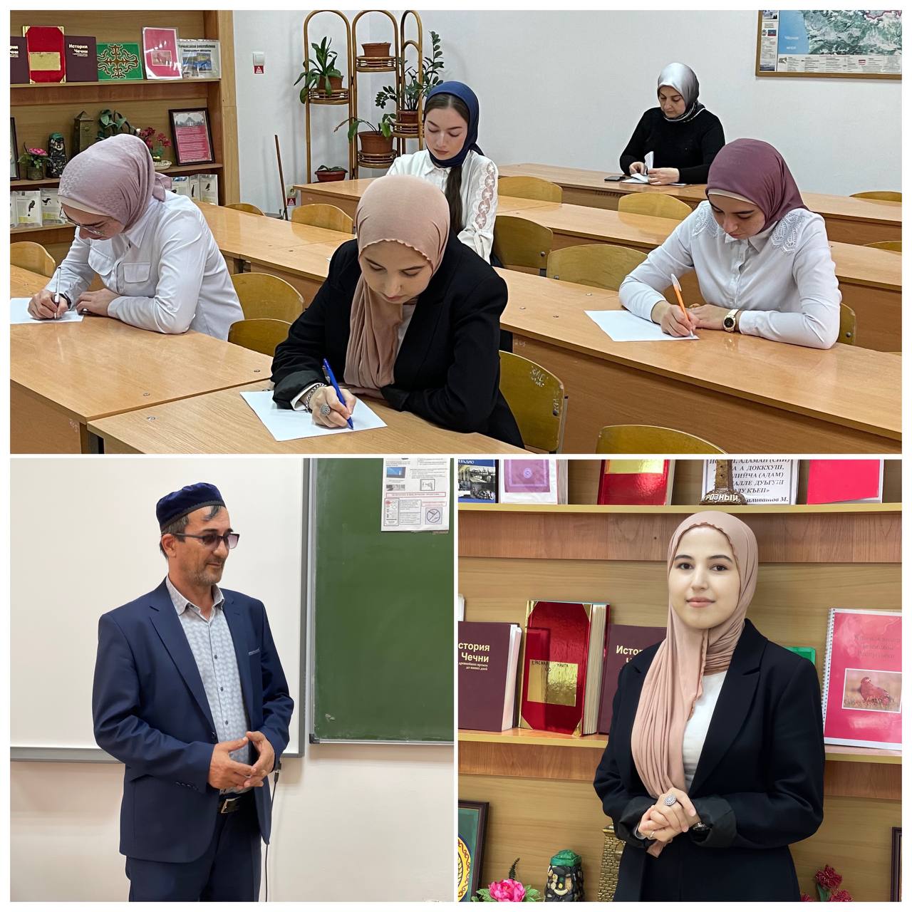 12.04.2022С. С-А. Джунаидовн ц1арах йолчу Гуьмсера хьехархойн колледжехь д1адирзира «Нохчийн маттахь тоьлла сочинени» къовсадалар колледжана юкъахь. Финале бевлира студенташ: 1. Ильясова Аза- 9-1 «Б» 2. Ханбиева Линда- 9-2 «А» 3. Алиева Танзила- 11-2 «А» 4. Исламова Жаннат- 9-3 «Б» Хьалхара меттиг яьккхира Исламова Жанната. Толамхочо дакъалоцур ду региональни т1ег1анехь д1ахьур долчу къовсадаларехь. Дала т1аьхье беркате йойла!