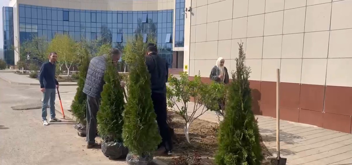 Сотрудники ГБПОУ «ГПК имени С. С-А. Джунаидова» продолжают работу по озеленению территории.