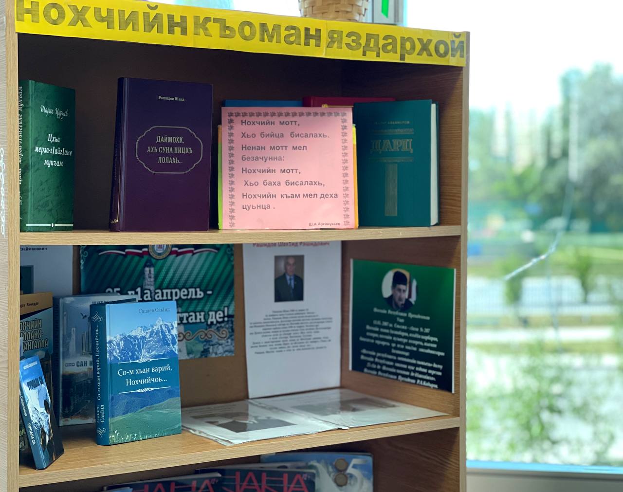 22.04.2022В рамках празднования дня чеченского языка, с целью повышения интереса к родному языку библиотека ГБПОУ «ГПК имени С.С-А.Джунаидова» оформила книжную выставку «Нохчийн кьоман яздархой», где представлены произведения чеченских поэтов и писателей: Абузара Айдамирова, Саида Гацаева, Канты Ибрагимова,Шаида Рашидова, а также биографии других известных писателей Чечни.