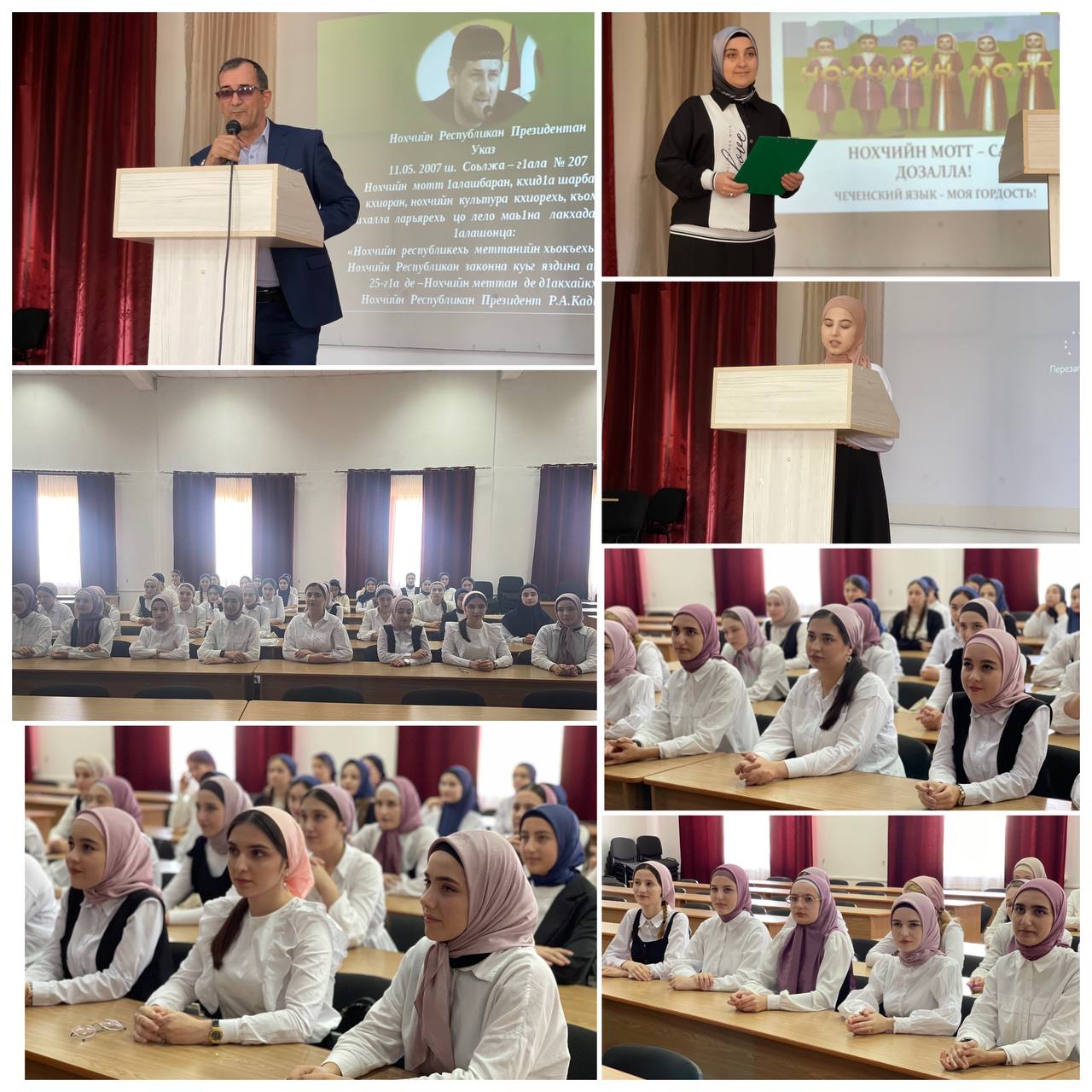 26.04.2022Конференци д1ахьош берш, вовшахтоьхнарш бара 1илманан-методически декъехула директоран г1овс Межидова Зарета Усмановна, нохчийн меттан, литературин хьехархо Умаров 1абдулмуслиман Лом-1ела, 3-чу курсан студентка Исламова Жаннат. Кхоалг1ачу а, хьалхарчу а курсийн студенташ гулбеллера колледжан актови зала чохь. Межидова Заретас, Умаров Лом-1елас, Исламова Жанната чулацаме докладаш йира нохчийн маттах, цуьнан хьалдолш хиларх лаьцна. Гулбеллачара резахиларца ладуьйг1ира шайн дешаран накъосто, Исламова Жанната динчу къамеле. Гуш дара, докладчик ненан маттах, цуьнан хинйолчу кханенах доглозуш хилар. Теша лаьа, иштта ненан матте болчу безамца кхиъначу кегийрех дика хьехархой хирг хиларх. Дала т1аьхье беркате йойла!