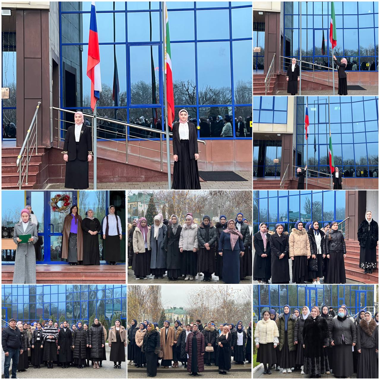 По традиции учебная неделя в колледже началась с торжественной церемонии поднятия Государственного флага и исполнения Гимна Российской Федерации и Чеченской Республики.