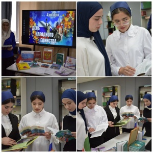 04.11.2023Ко дню народного единства в библиотеке ГБПОУ «ГПК имени С. С-А. Джунаидова» состоялась книжная выставка: «Сила России - в единстве народов», на которой были представлены книги, содержащие информацию об истории происхождения праздника, его значения для всей нашей страны.
