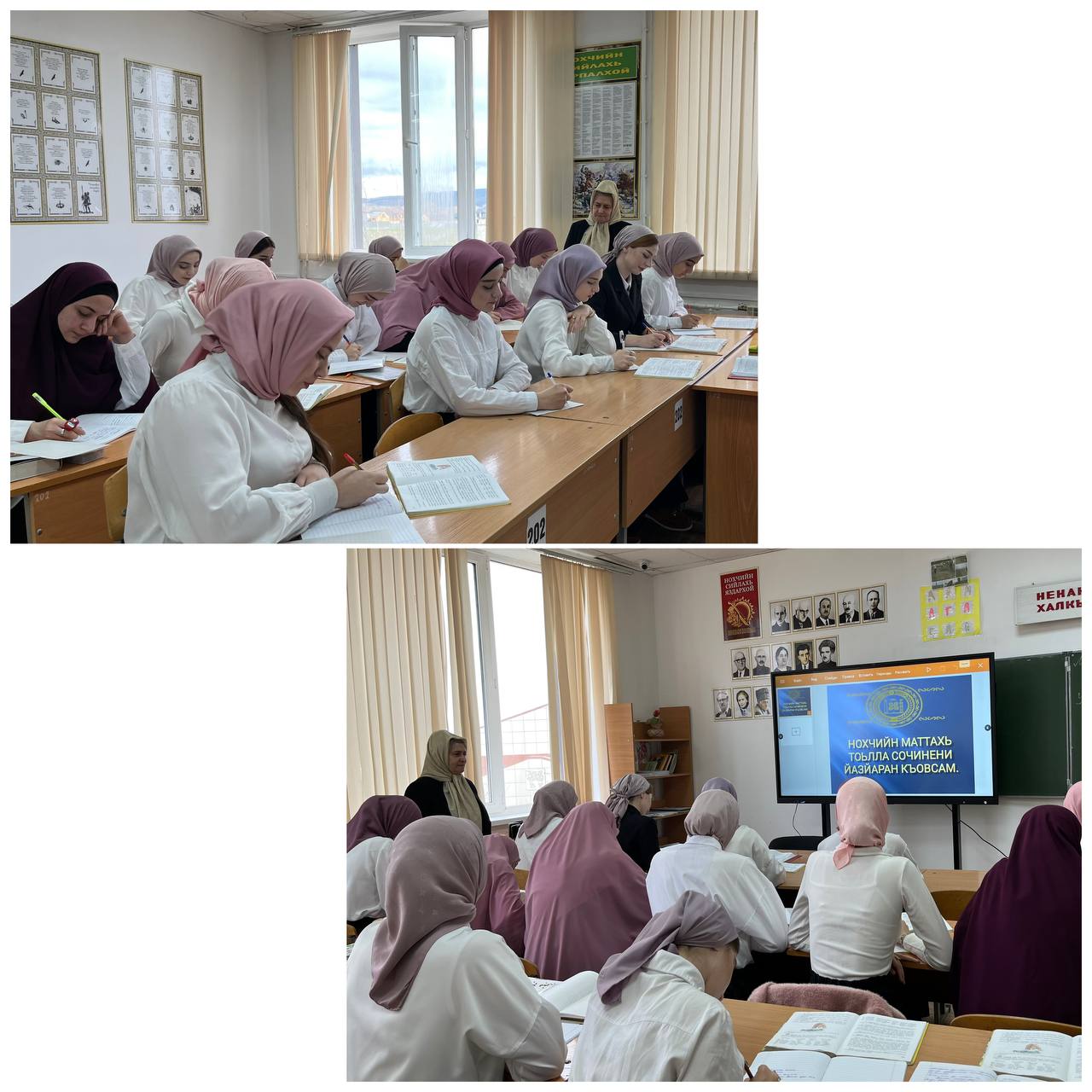18.11.2023Лахьанан беттан 17-чу дийнахь Гуьмсан С. С-А. Джунаидовн ц1арах йолчу колледжехь хилира нохчийн маттахь тоьлла сочинени йазйаран къовсам. Къовсам кечбинера нохчийн меттан хьехархочо Маллаев Амхьадан Заграс. 4-чу курсан студенташна йукъахь д1абаьхьира къовсам. Тайп-тайпана чулацам болуш, кхо тема йара йукъайиллина: 1. «Хьо баха бисалахь, нохчийн мотт!»; 2. «Нохчийчоь - къонахий кхиийна латта»; 3. «Нохчийн 1адаташ». Шина сохьтехь сочиненеш йазйира студенташа. Толамхой билгалбийр бу, мехала совг1аташ а дийр ду. Дала т1аьхье беркате йойла!