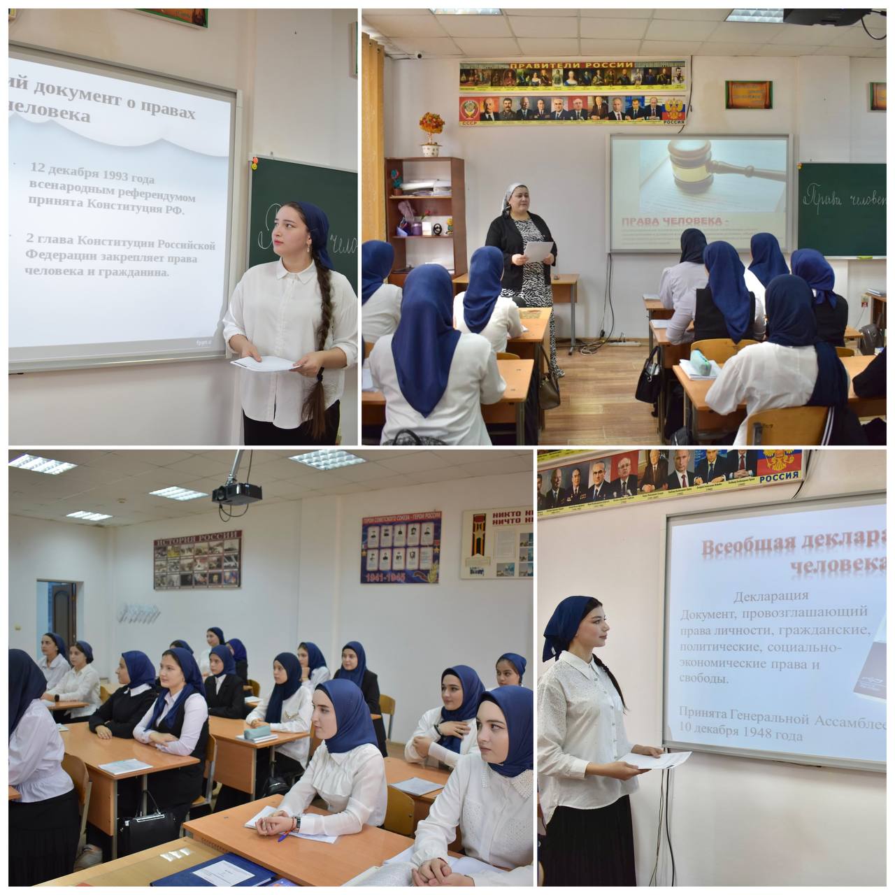 06.12.2023В ГБПОУ «ГПК имени С. С- А. Джунаидова», Добачева Л.Б., провела уроки в рамках масштабной образовательной акции - Всероссийский единый урок «Права человека», приуроченный ко Всемирному Дню прав человека. Цель урока: дать представление о правах человека; познакомить обучающихся с содержанием и классификацией основных прав и свобод человека; формировать навыки работы с правовыми источниками; формировать умение аргументировать свою позицию, вести конструктивный диалог; способствовать осознанию ценности каждого человека. Уроки прошли продуктивно и познавательно!