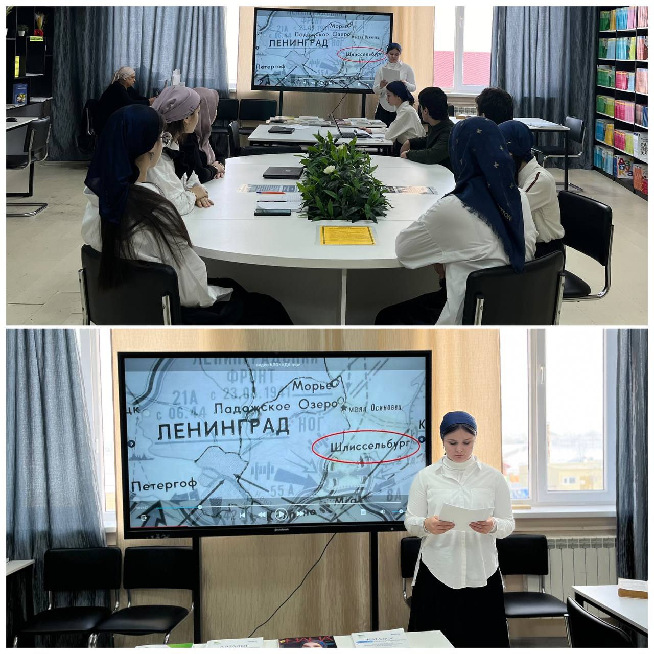В честь Дня снятия блокады Ленинграда, библиотекарь ГБПОУ «ГПК имени С. С-А. Джунаидова», Оздарбиева М.В., провела увлекательный исторический час для студентов.