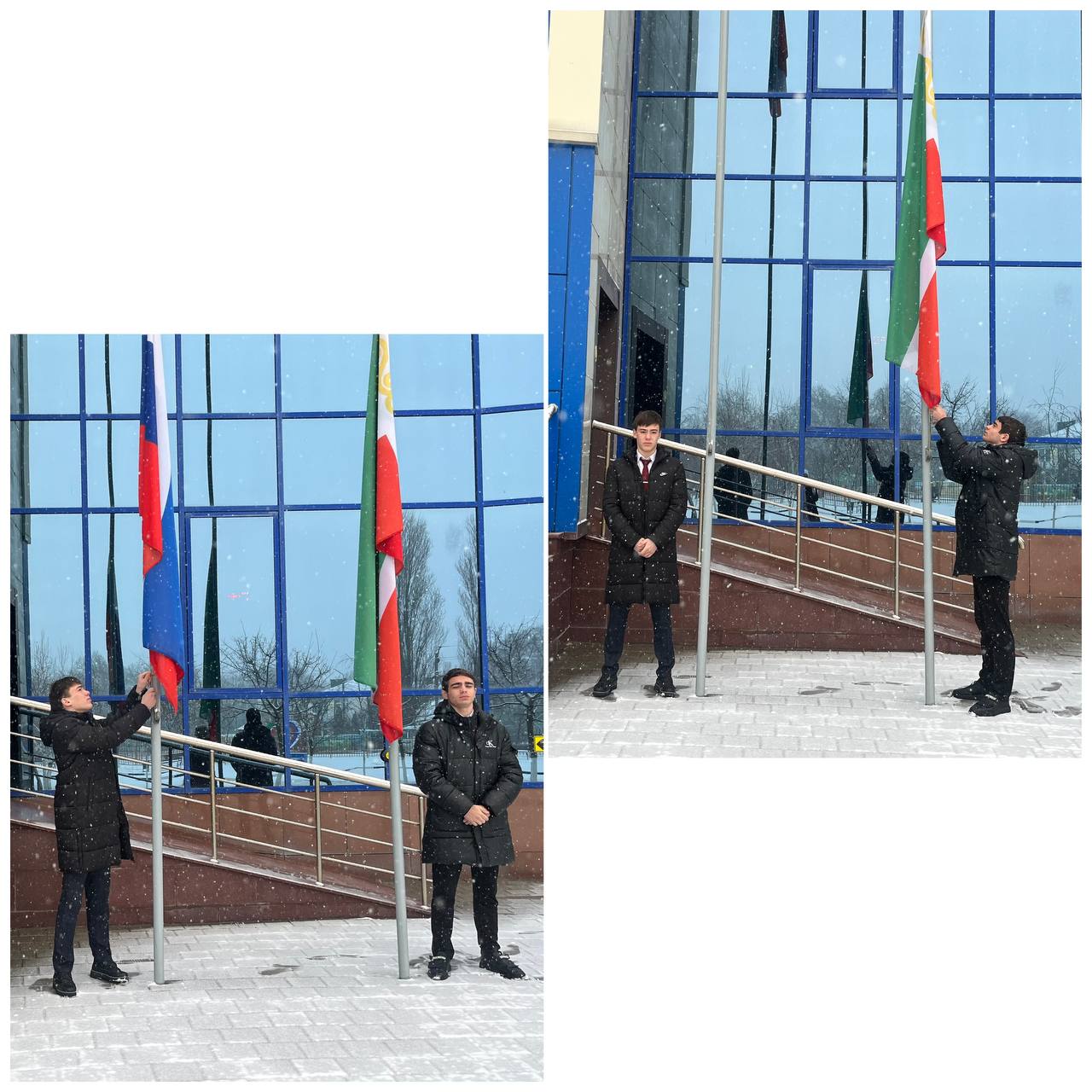 Новая учебная неделя студентов ГБПОУ «ГПК имени С. С-А. Джунаидова» началась с традиционной церемонии поднятия государственного флага Российской Федерации и Чеченской Республики.