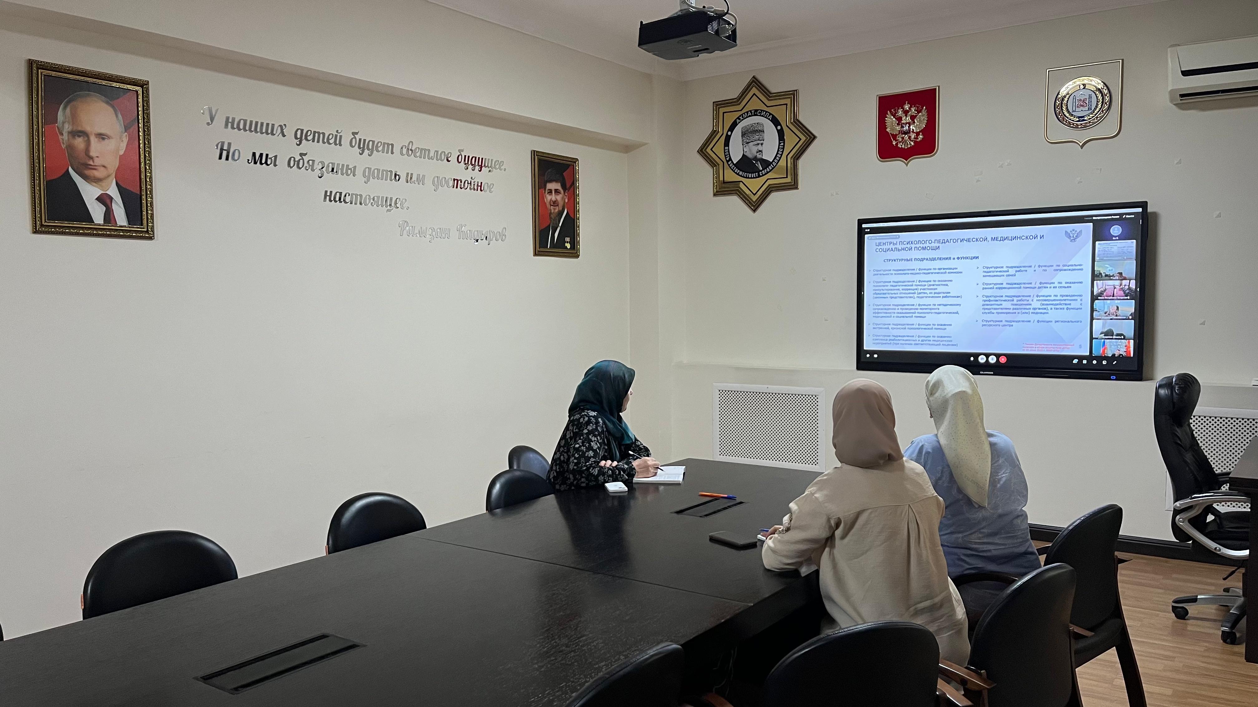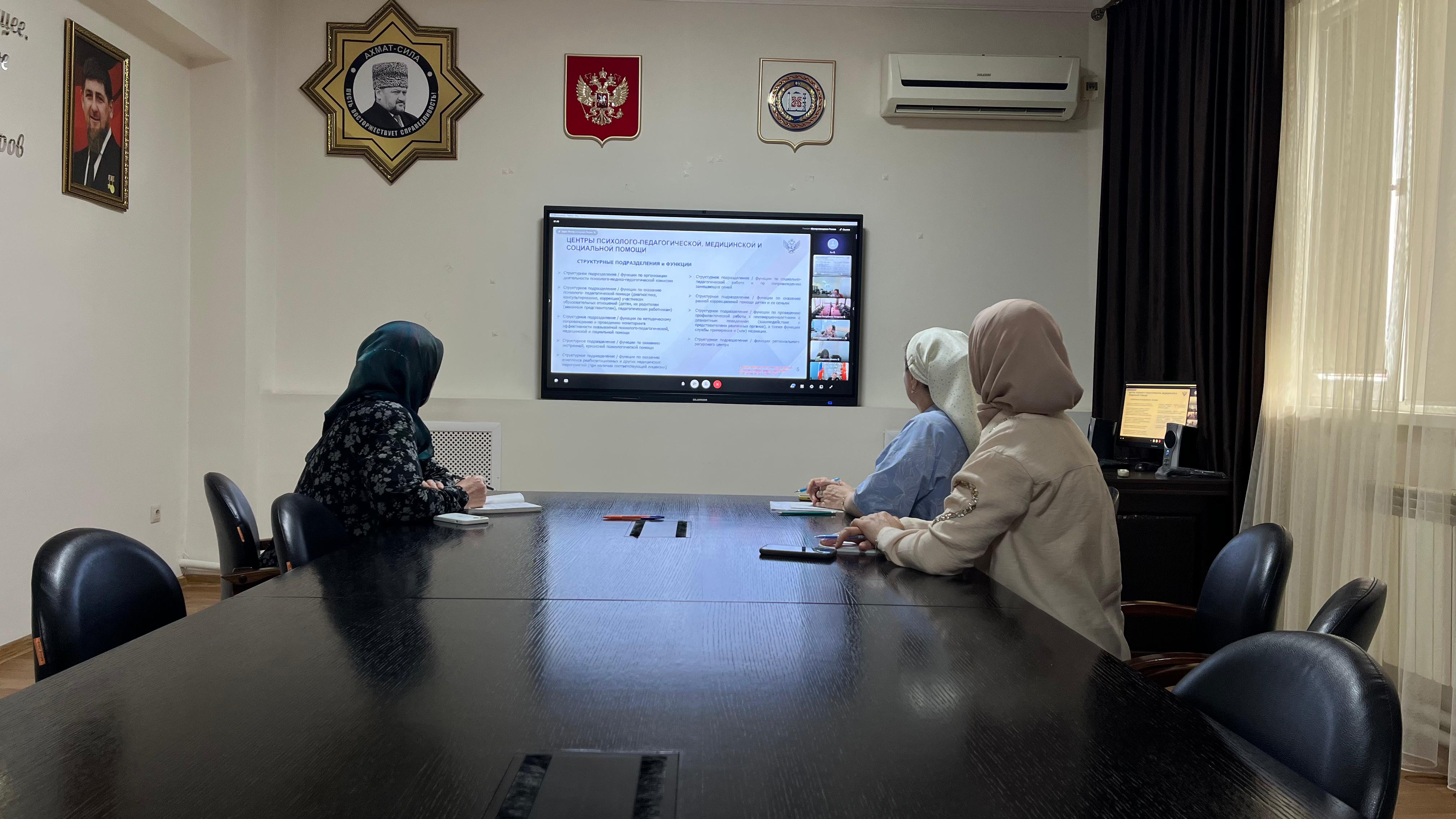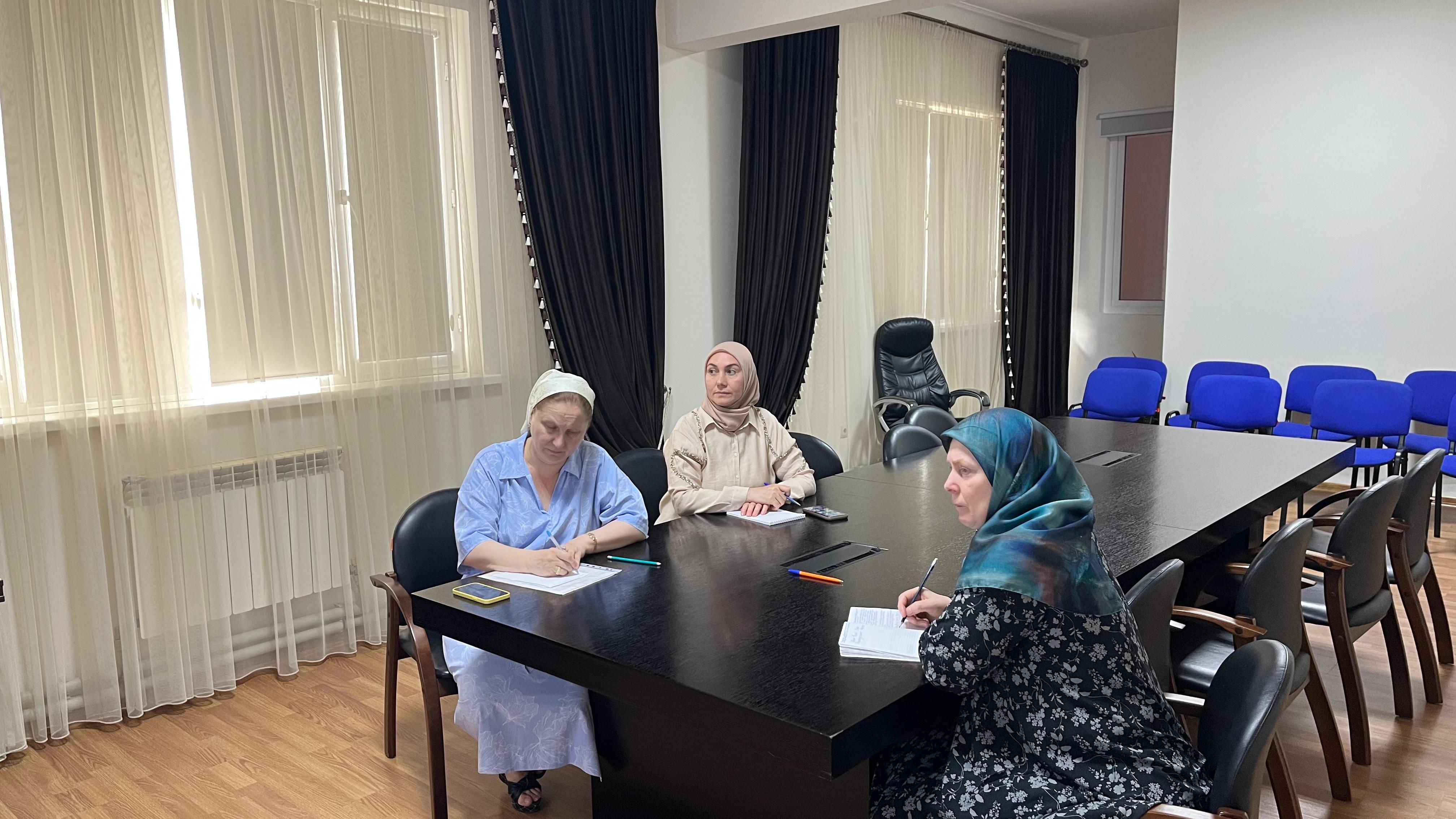 В совещании приняли участие руководитель Центра М.И. Лорсанова, заместитель по учебно-методической работе М.В. Гелаева и заместитель директора по общим вопросам З.Х. Келиматова.