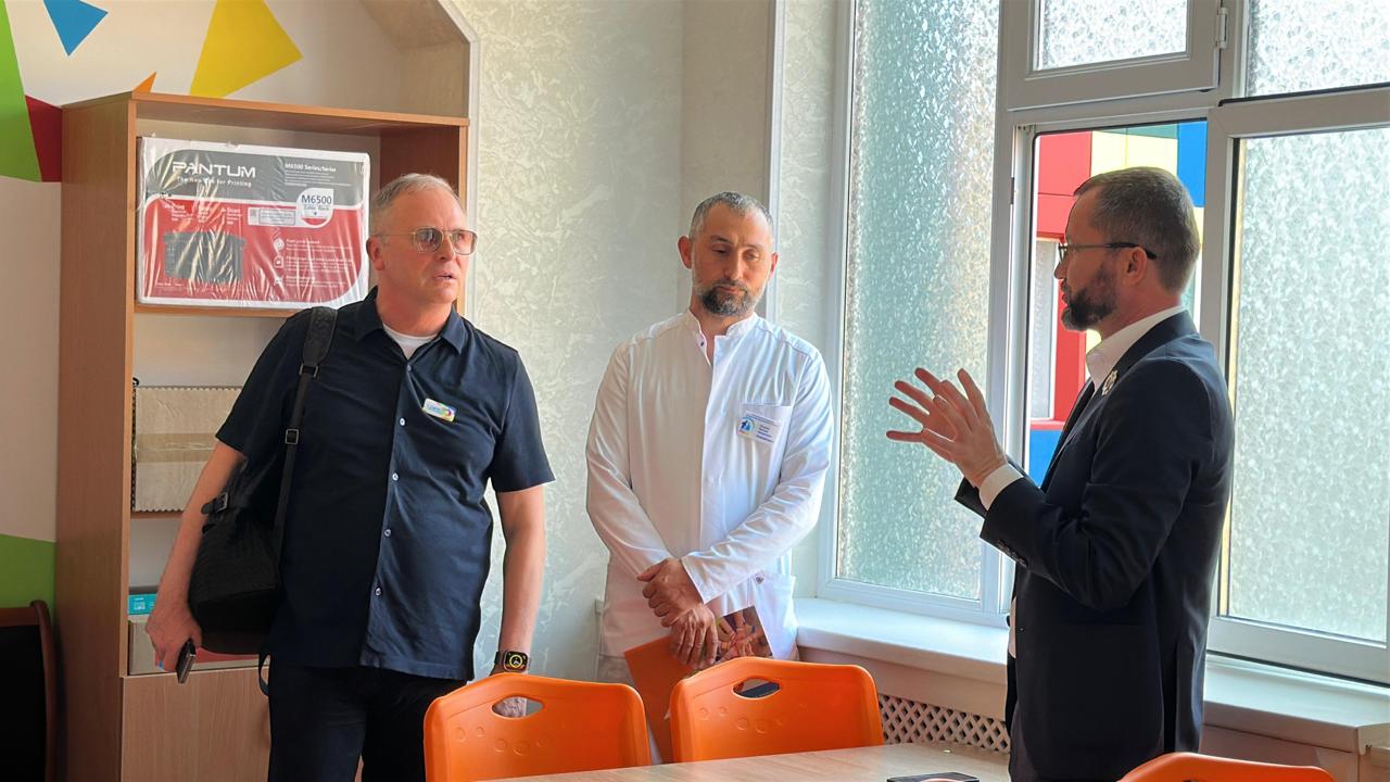 Особое внимание уделили взаимодействию системы здравоохранения и образования, осмотрели школьный сектор больницы.