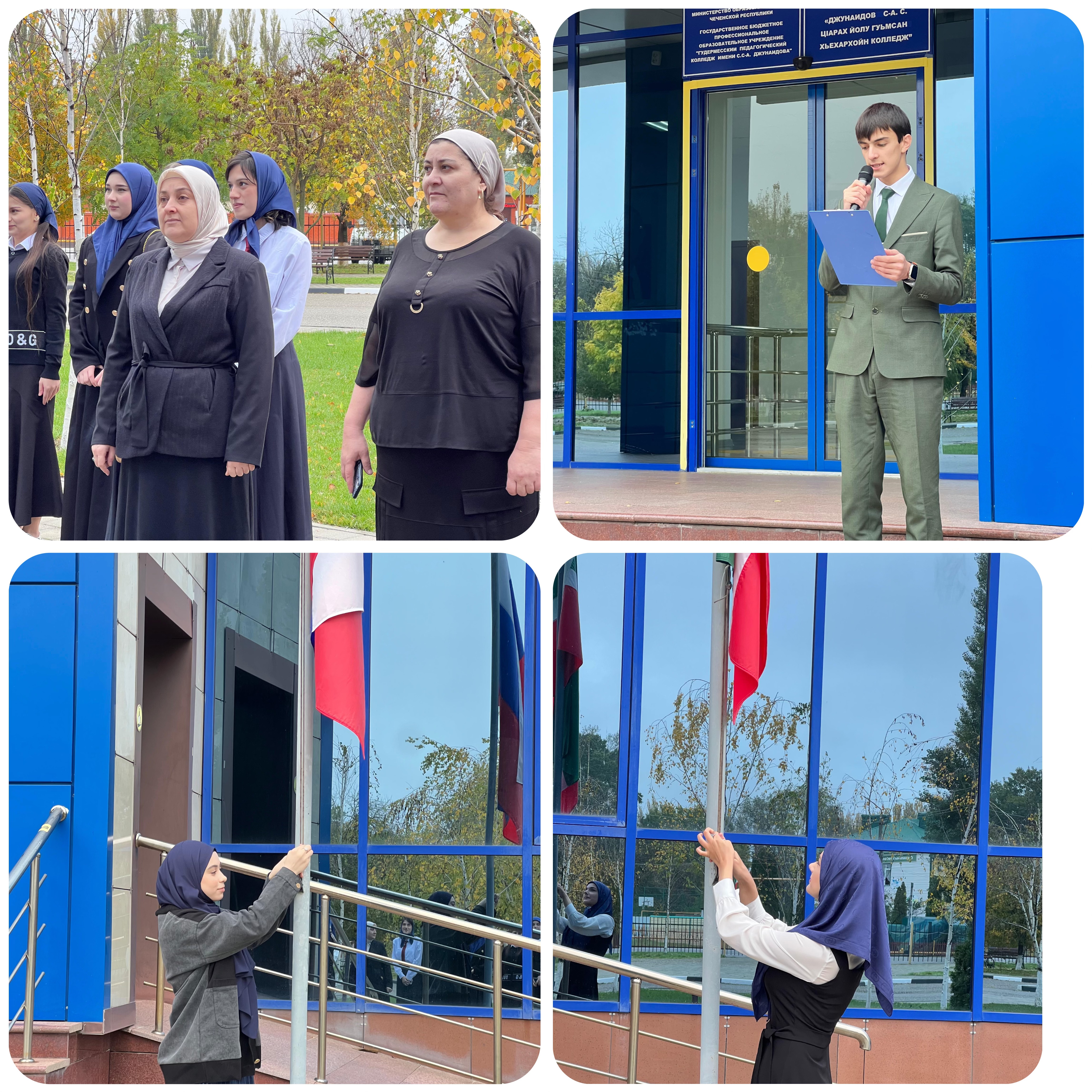 Новая учебная неделя студентов ГБПОУ «ГПК имени С. С-А. Джунаидова» началась с традиционной церемонии поднятия государственного флага Российской Федерации и Чеченской Республики.