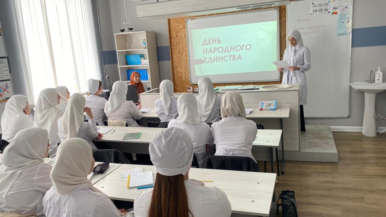 В преддверии праздника 1 и 3 ноября 2025 года в Частном профессиональном образовательном учреждении «Гуманитарном колледже «Эдельвейс» прошли кураторские часы во всех учебных группах, посвященные «Дню народного единства».                                                   Кураторы, поздравили обучающихся с наступающим праздником, пожелали здоровья и мирного неба над головой, подчеркнули значимость праздника Дня народного единства.             Проведение таких мероприятий помогает воспитывать чувство любви к Родине, гордости за неё, за народ, населяющий Россию.                                                   Основная цель таких мероприятий, посвященных празднованию Дня народного единства —  сформировать у обучающихся чувства патриотизма, преданности и благодарности к Родине, уважение к самобытности народов нашей страны, веры в добро и заботы о ближнем, духовных силах двигаться вперед и верить в лучшее будущее.